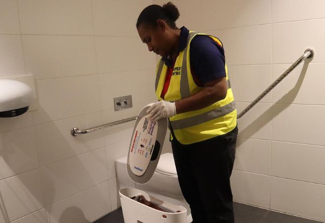 Scheduled supply, servicing, and compliant disposal of feminine hygiene bins to maintain washroom hygiene standards.
